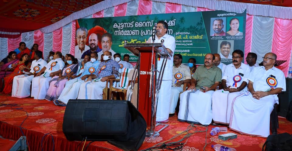 Honourable Minister for Law, Industries and Coir Shri. P. Rajeeve, unveiling the plaque to mark the commencement of Kuttanad Rice Park construction work.Honourable Minister delivering the inaugural speech.Honourable Minister for Law, Industries and Coir, Shri. P. Rajeeve lighting the lamp to mark the commencement of Kuttanad Rice Park construction work.Honourable Member of Legislative Assembly, Shri. Saji Cherian delivering his presidential address.Guest of Honour, Shri. P. Prasad (Honourable Minister for Agriculture) addressing the gathering.